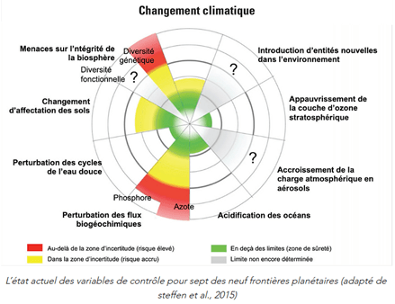 D’après une étude de 2015 (Steffen et al.), les quantités d’azote et de phosphore dans notre environnement seraient responsables de la perturbation des flux biogéochimiques.